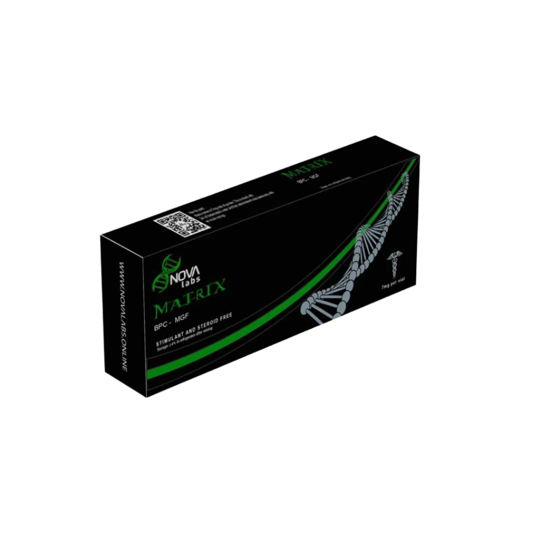 Nova Labs Matrix Healing Peptide is a unique blend designed for comprehensive tissue repair and recovery, combining 5 mg of BPC-157 and 2 mg of MGF (Mechano Growth Factor). This formula targets both joint and muscle healing, making it ideal for users seeking relief from chronic injuries, inflammation, or muscle recovery needs.